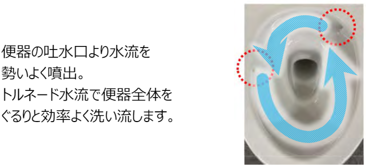 ■トルネード洗浄(水が渦を巻いてしっかり汚れを落とす)