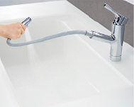 シンクの隅々まで洗い流せるので、無理なく、効率よく水を使えます。