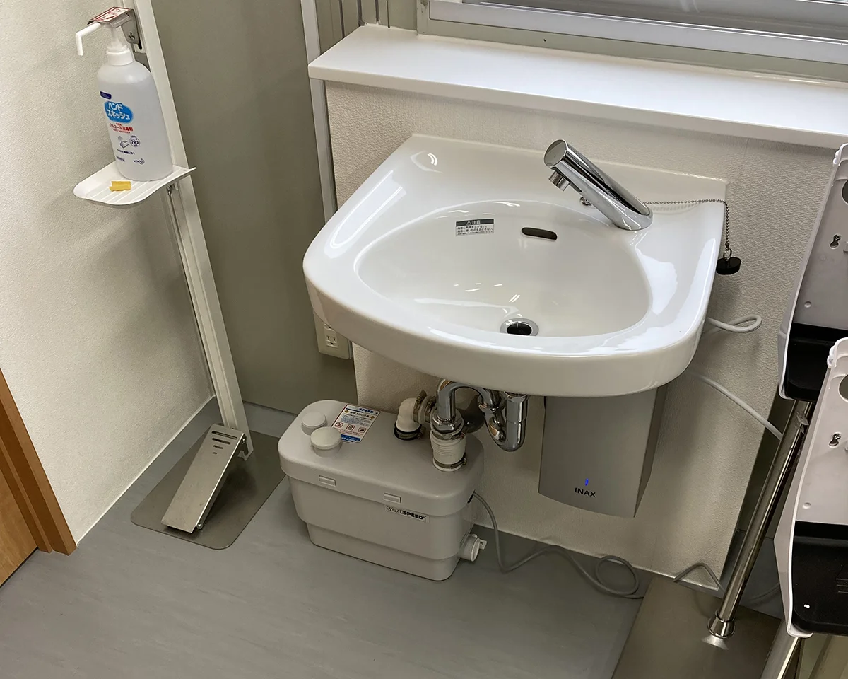 シンクや手洗器にはSFAポンプ(サニスピードプラス)、トイレにはSFAポンプ(サニアクセス3)を導入することで大掛かりな床下工事を省力化することができ、省施工・短工期で水まわり設備を増設できました。